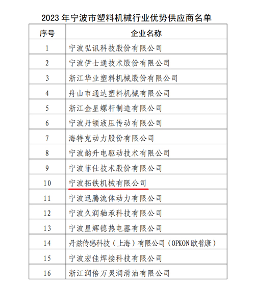 公司獲評(píng)寧波塑機(jī)協(xié)會(huì)“優(yōu)勢(shì)供應(yīng)商”