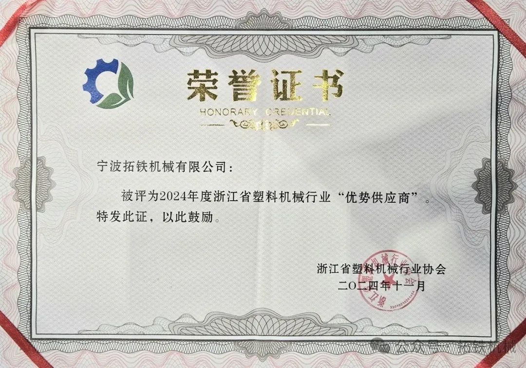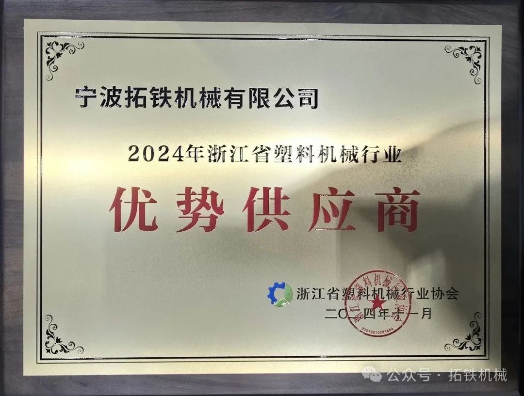 喜報(bào)!拓鐵再獲浙江省塑機(jī)協(xié)會(huì)“優(yōu)勢供應(yīng)商”榮譽(yù)